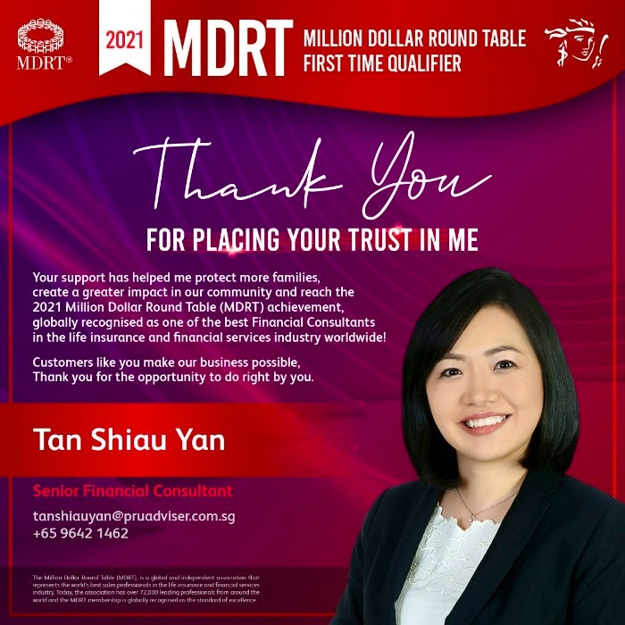 Shiau Yan become my agent when my previous one left. She is very prompt in answering my questions and concerns. When I submit my claim, she is willing to help and follow up closely, let me know what are the documents and information required for claim submission. She also let me know about any event or seminar which she finds it is useful and relevant and invite me to join. Before our meeting, there will be scheduled reminder in advance which I find that this is very thoughtful and helpful as most of the time we are busy with our own hectic work schedule. Thank you Shiau Yan for all of your help! I appreciate that you are my agent!